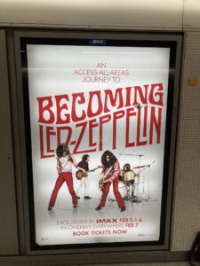 Countdown to the Becoming Led Zeppelin screenings – eleven days to go and counting …saw this poster this morning at Kings Cross tube – it’s getting a bit exciting now!