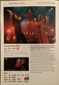 Great to be back out and out today for the first time in a while as Janet and I went to the fair city of St Albans to watch the film Song Sung Blue at the fantastic art deco school luxurious Odyssey Cinema.